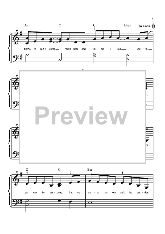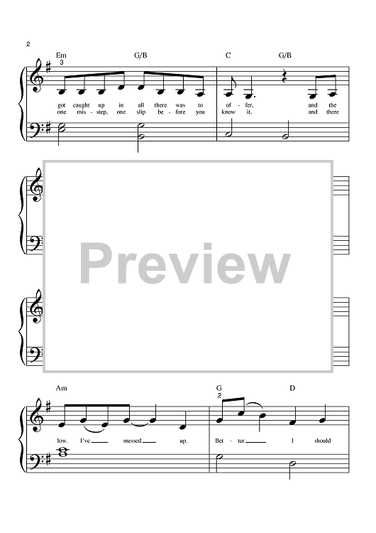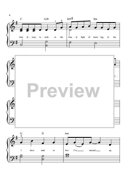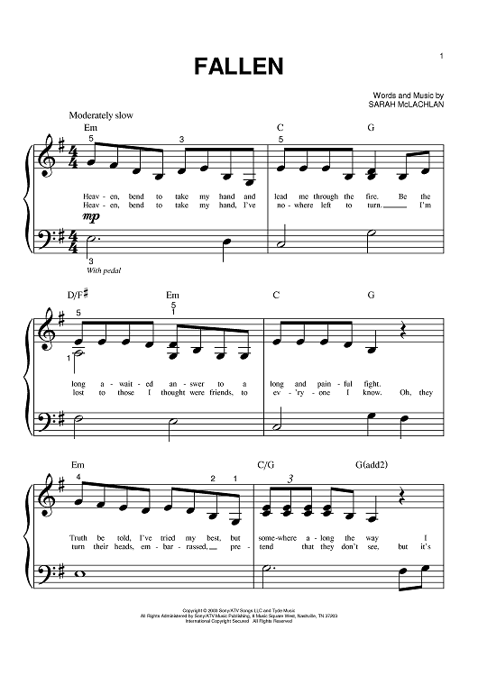 Digital Sheet Music for Fallen by Sarah McLachlan scored for Big Note Piano; id:381753