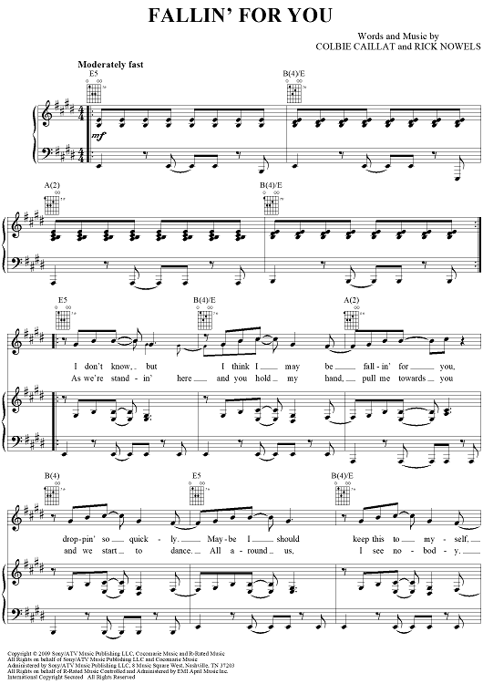 Digital Sheet Music for Fallin' for You by Rick Nowels, Colbie Caillat scored for Piano/Vocal/Chords; id:405698