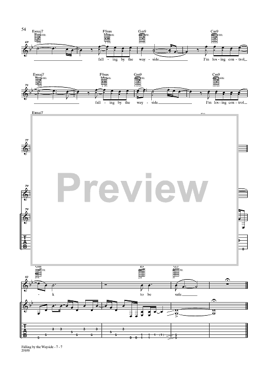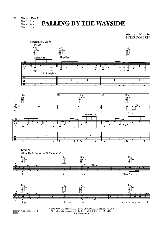 Digital Sheet Music for Falling By the Wayside by Peter Roberts, People In Planes scored for Guitar Tab/Vocal; id:356834