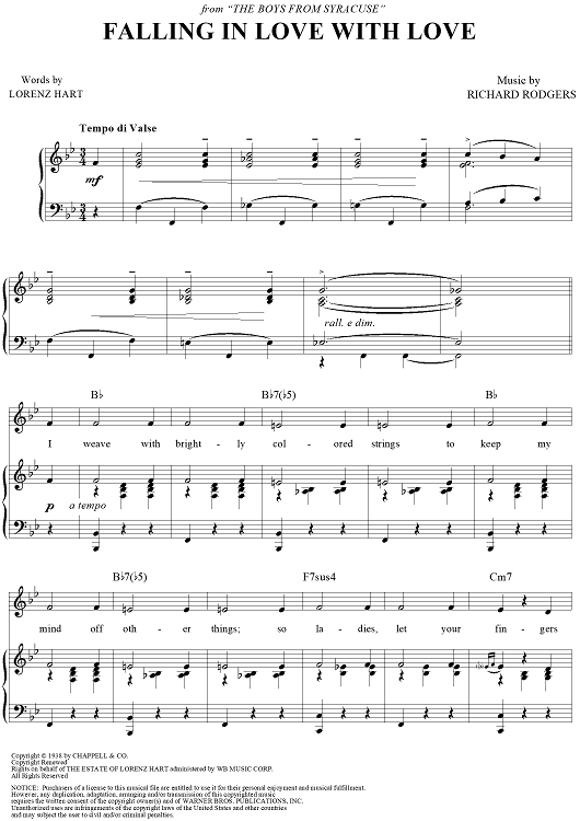 Digital Sheet Music for Falling in Love With Love by Frank Sinatra, Richard Rodgers, Lorenz Hart scored for Piano/Vocal/Chords; id:112154