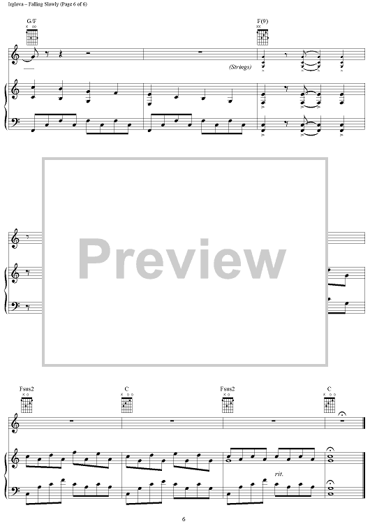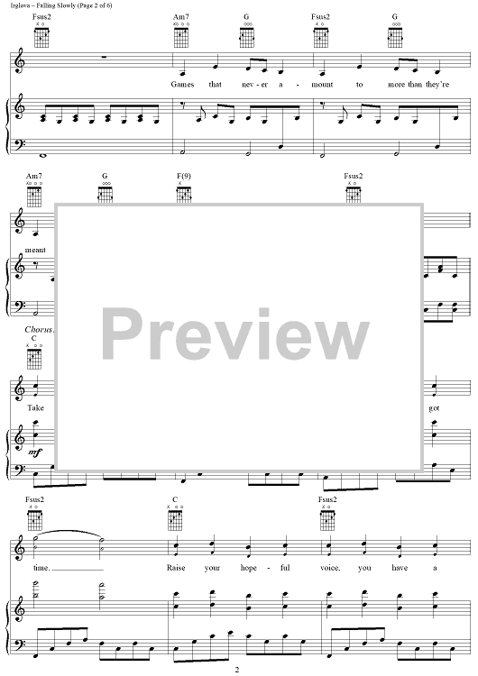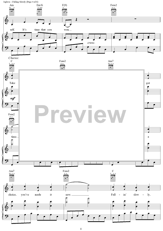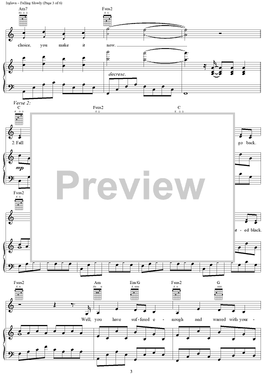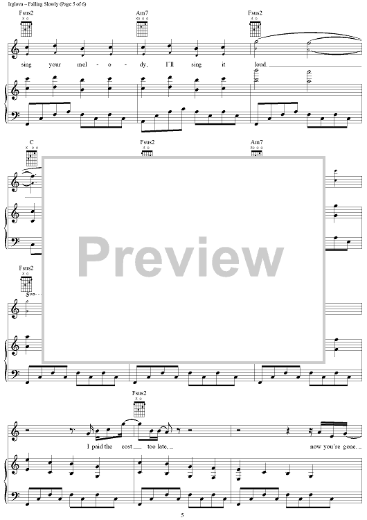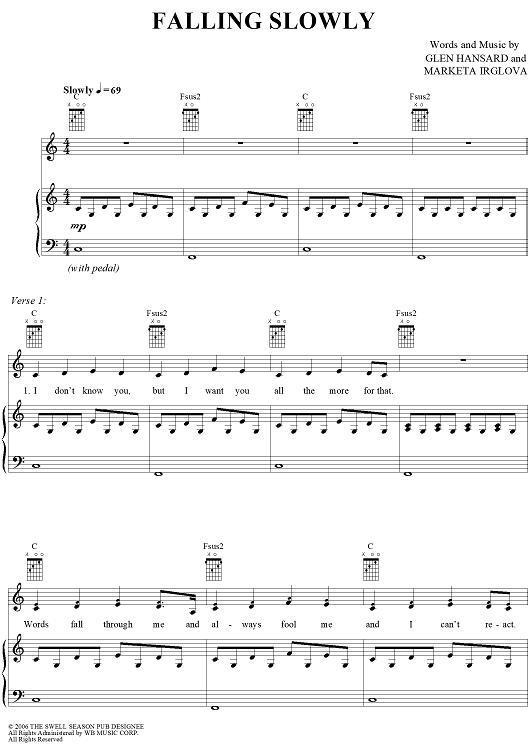 Digital Sheet Music for Falling Slowly by Glen Hansard, Marketa Irglova scored for Piano/Vocal/Chords; id:404837