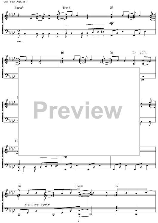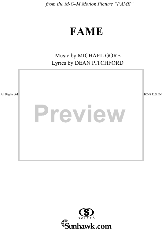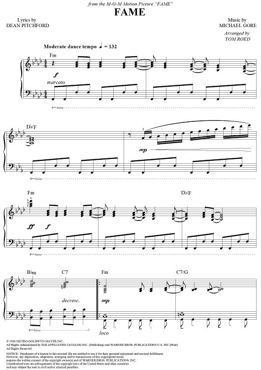 Digital Sheet Music for Fame by Michael Gore, Dean Pitchford, Tom Roed scored for Piano Solo; id:120690