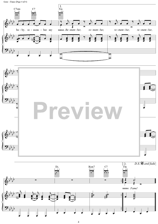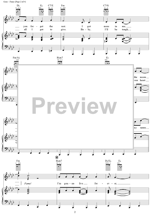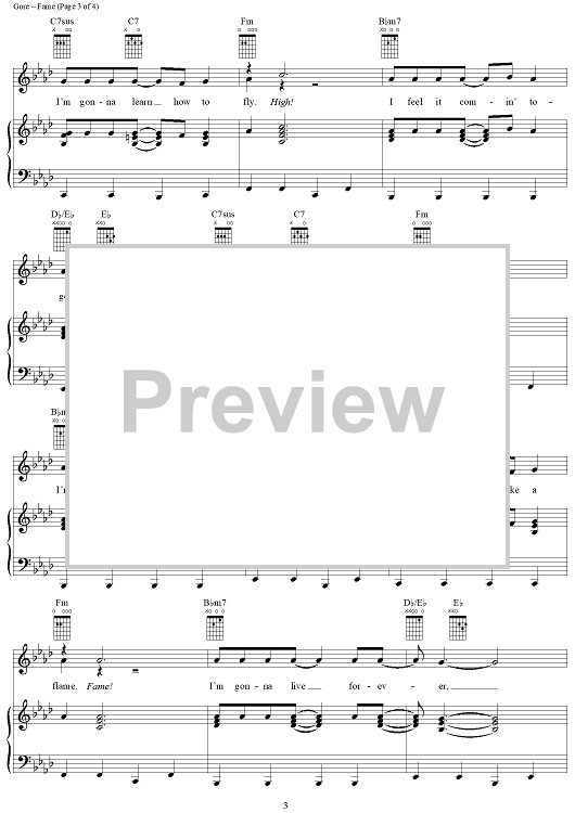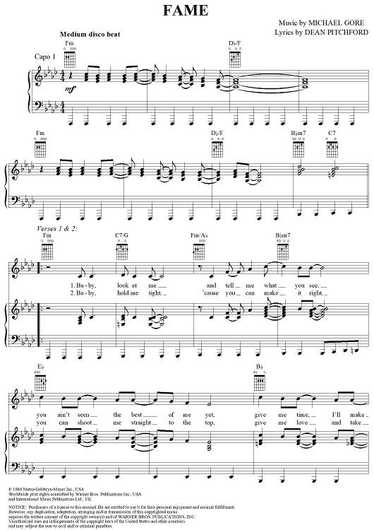 Digital Sheet Music for Fame by Michael Gore, Dean Pitchford scored for Piano/Vocal/Chords; id:359476