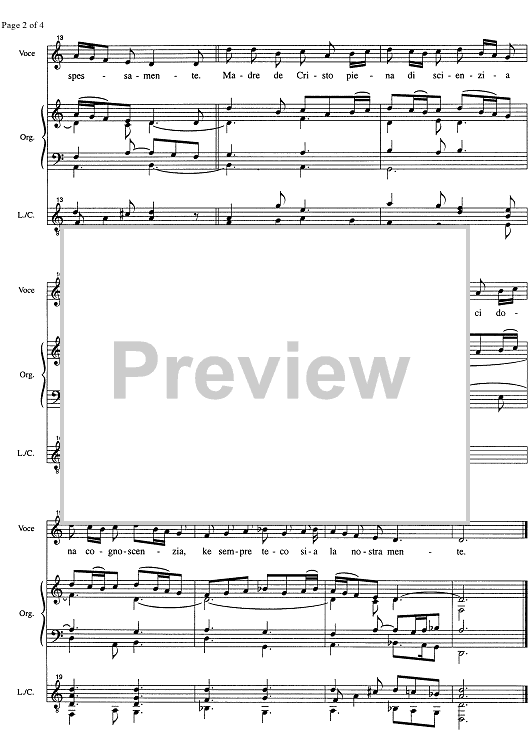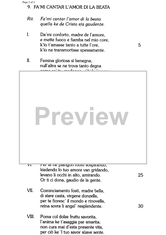 "Fa'mi cantar l'amor di la beata - Score" Sheet Music by Unknown Writer