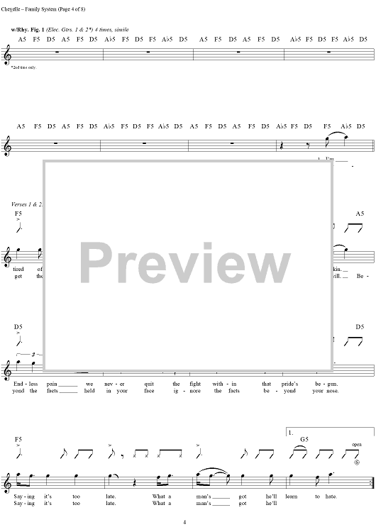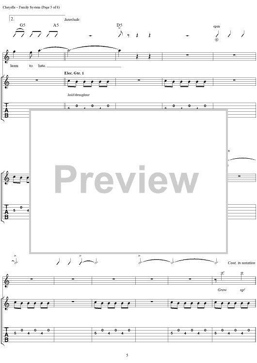 Digital Sheet Music for Family System by Chevelle, Pete Loeffler scored for Guitar Tab/Vocal; id:297399