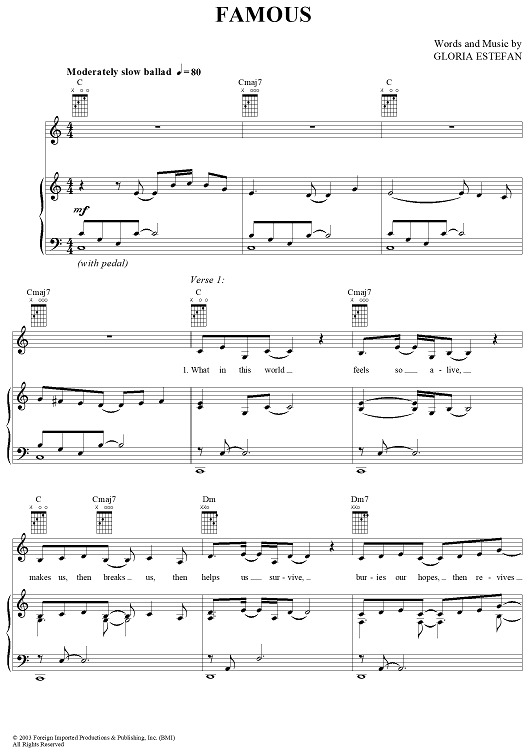 "Famous" Sheet Music by Gloria Estefan