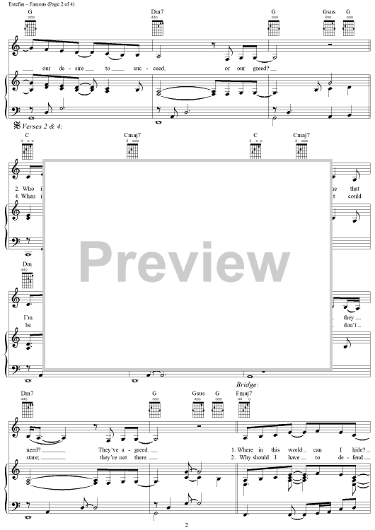 Digital Sheet Music for Famous by Gloria Estefan scored for Piano/Vocal/Chords; id:305294