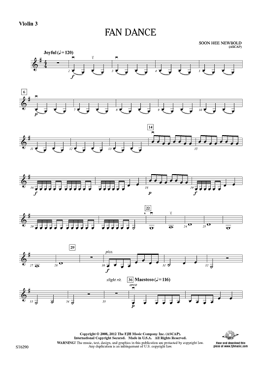 "Fan Dance - Violin 3 (Viola T.C.)" Sheet Music by Soon Hee Newbold