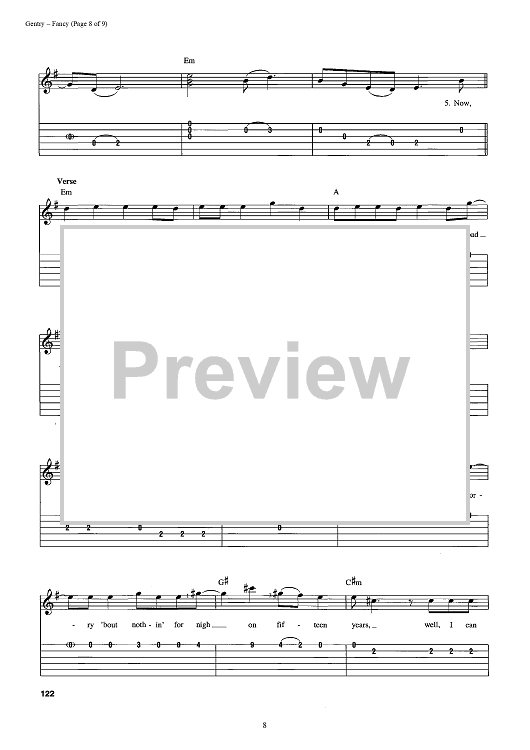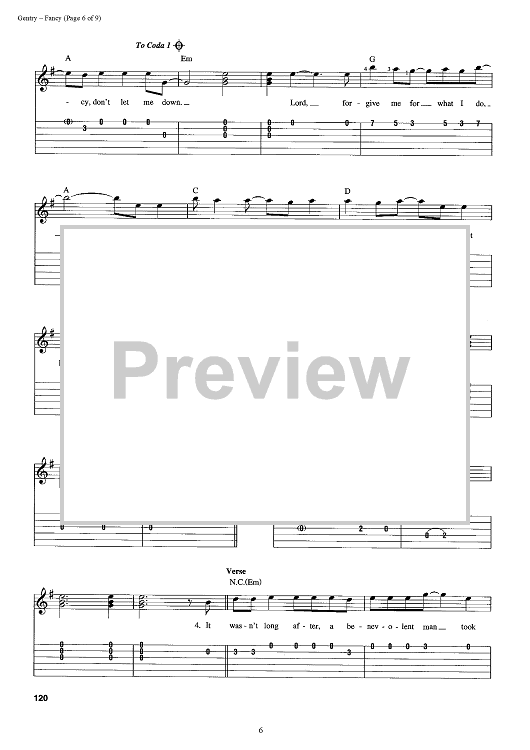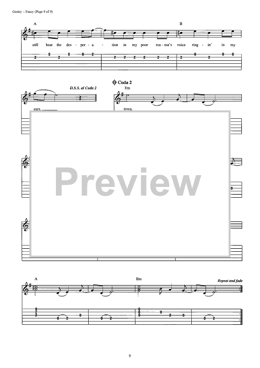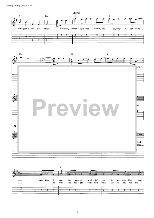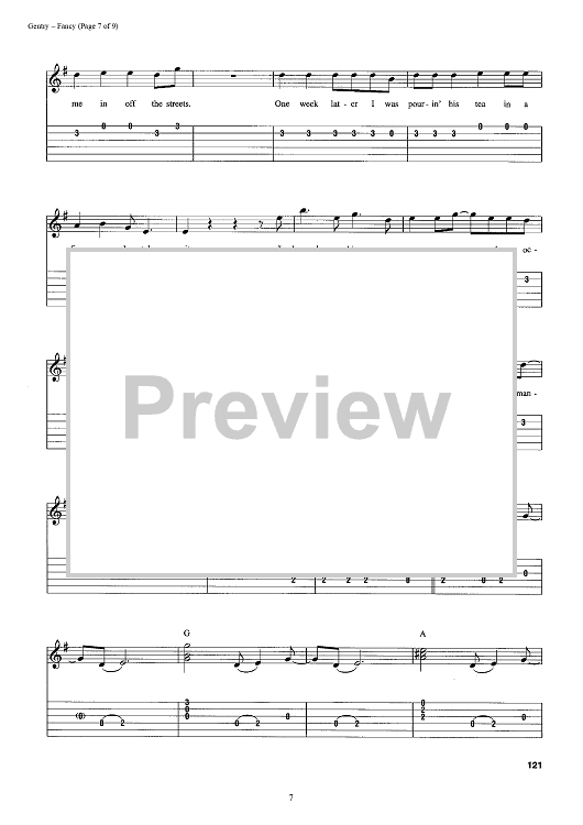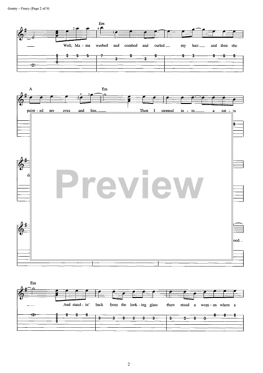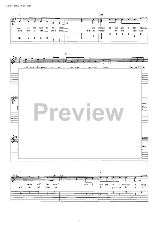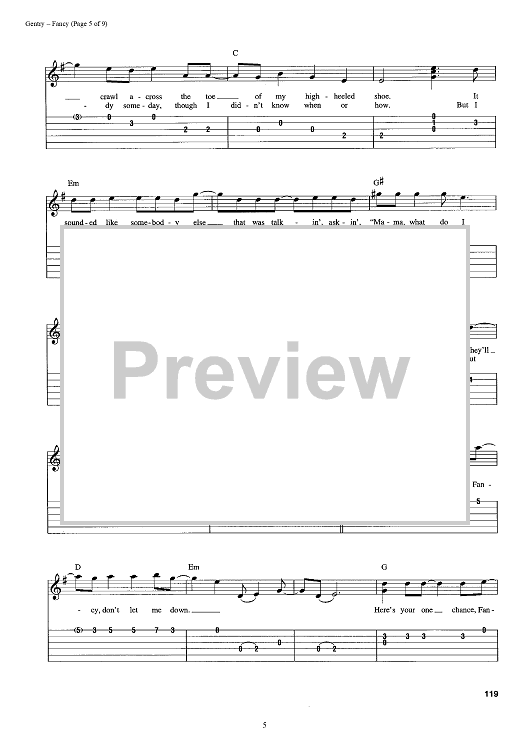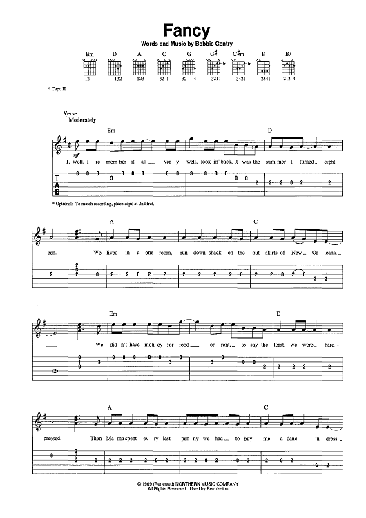 Digital Sheet Music for Fancy by Reba McEntire, Bobbie Gentry scored for Easy Guitar Tab/Vocal; id:392986
