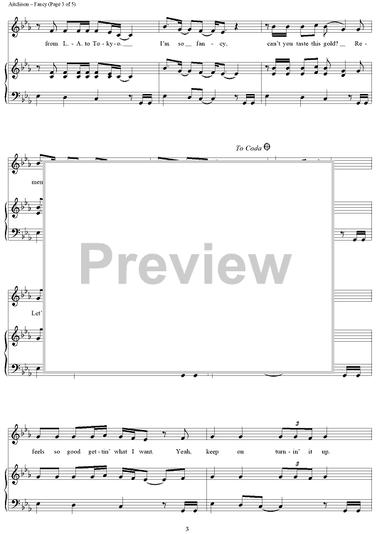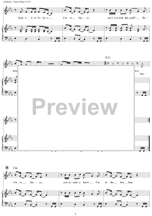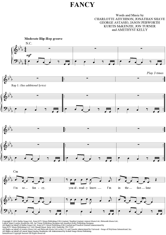 Digital Sheet Music for Fancy by George Astasio, Jason Pebworth, Charlotte Aitchison, Iggy Azalea, Jonathan Shave, Kurtis McKenzie, Jon Turner, Amethyst Kelly, XCX scored for Piano/Vocal/Chords; id:442942