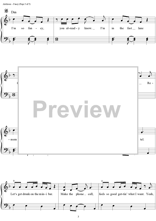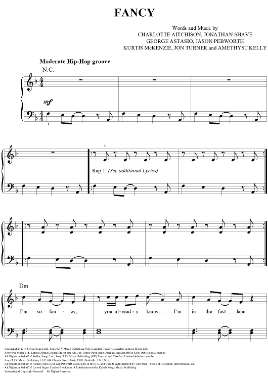 Digital Sheet Music for Fancy by George Astasio, Jason Pebworth, Charlotte Aitchison, Iggy Azalea, Jonathan Shave, Kurtis McKenzie, Jon Turner, Amethyst Kelly scored for Easy Piano/Vocal/Chords; id:447356