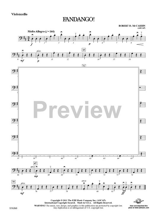 Digital Sheet Music for Fandango! - Violoncello by Robert D. McCashin scored for String Orchestra; id:421707