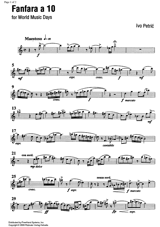 Digital Sheet Music for Fanfara a 10 - B-flat Trumpet 1 by Ivo Petric scored for Brass Ensemble; id:351861