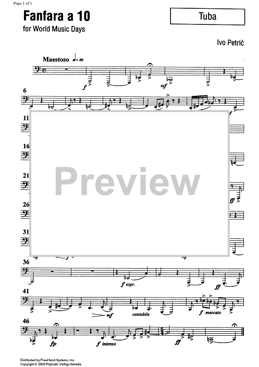 Digital Sheet Music for Fanfara a 10 - Tuba by , Ivo Petric scored for Brass Ensemble; id:351873