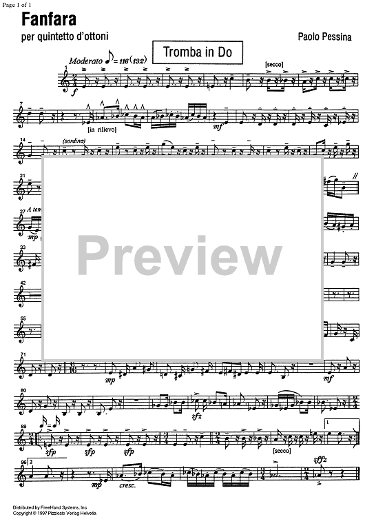 "Fanfara - Trumpet in C" Sheet Music by Paolo Pessina