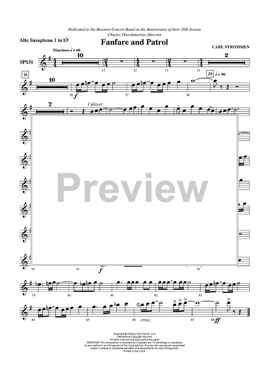 Digital Sheet Music for Fanfare and Patrol - Alto Sax 1 by Carl Strommen scored for Concert Band; id:409306