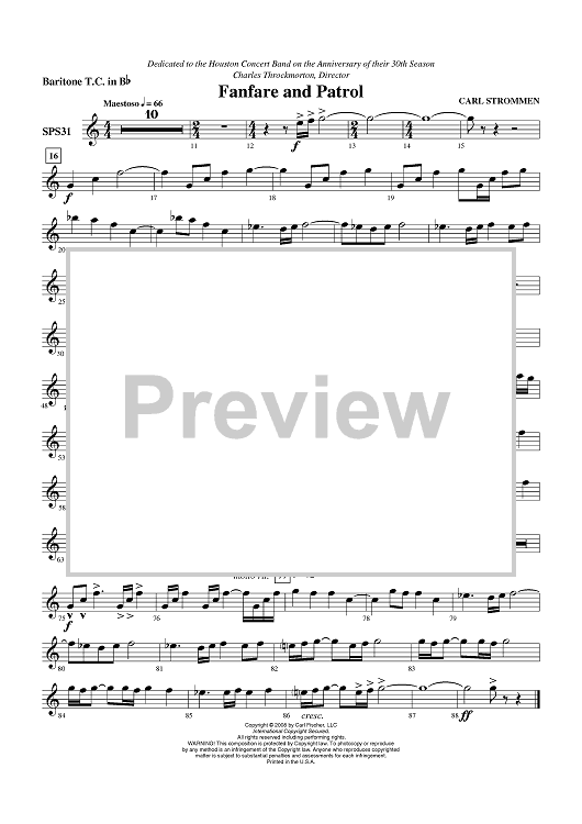 Digital Sheet Music for Fanfare and Patrol - Baritone TC by Carl Strommen scored for Concert Band; id:409320