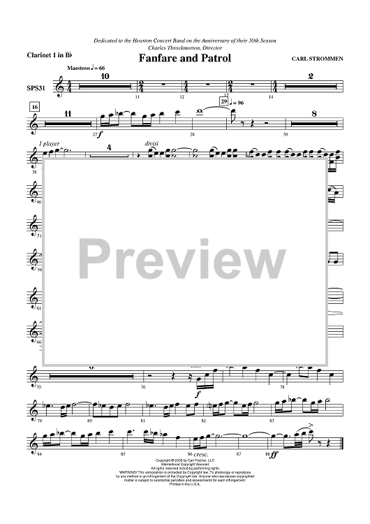 Digital Sheet Music for Fanfare and Patrol - Clarinet 1 in B-flat by Carl Strommen scored for Concert Band; id:409301