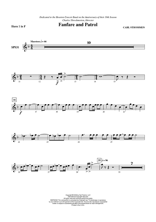 Digital Sheet Music for Fanfare and Patrol - Horn in F 1 by Carl Strommen scored for Concert Band; id:409313