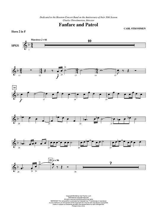 Digital Sheet Music for Fanfare and Patrol - Horn in F 2 by Carl Strommen scored for Concert Band; id:409314