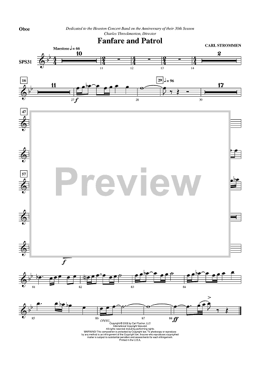 "Fanfare and Patrol - Oboe" Sheet Music by Carl Strommen