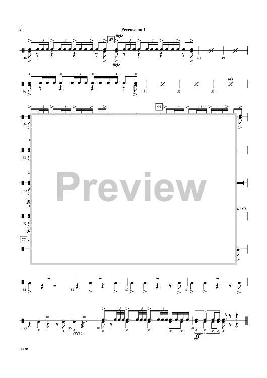 Digital Sheet Music for Fanfare and Patrol - Percussion 1 by Carl Strommen scored for Concert Band; id:409325