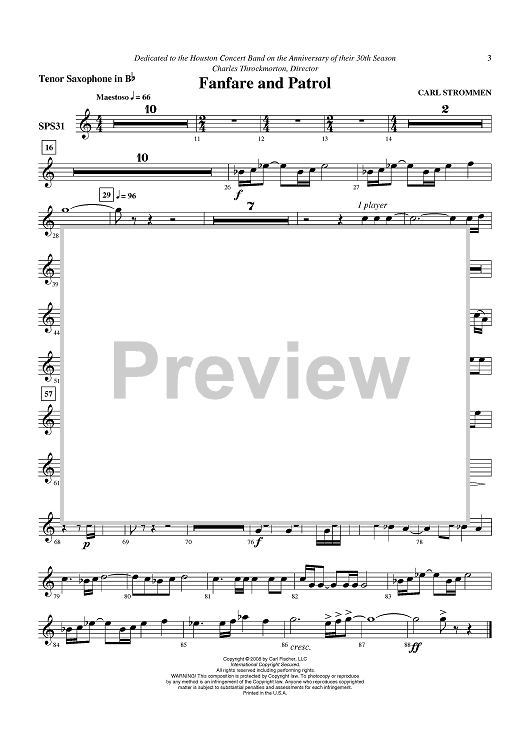 "Fanfare and Patrol - Tenor Sax" Sheet Music by Carl Strommen