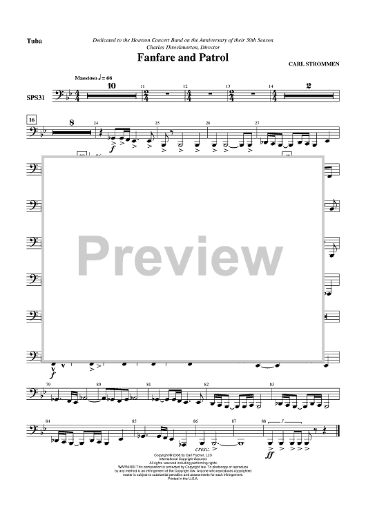 Digital Sheet Music for Fanfare and Patrol - Tuba by Carl Strommen scored for Concert Band; id:409322