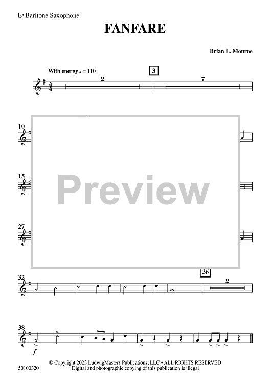 "Fanfare - Eb Baritone Saxophone" Sheet Music by Brian Monroe