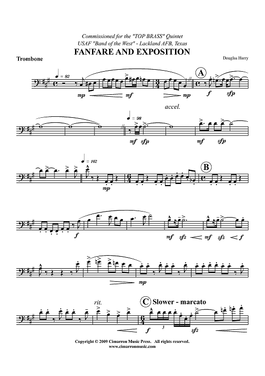 "Fanfare & Exposition for Brass - Trombone" Sheet Music by Douglas Harry