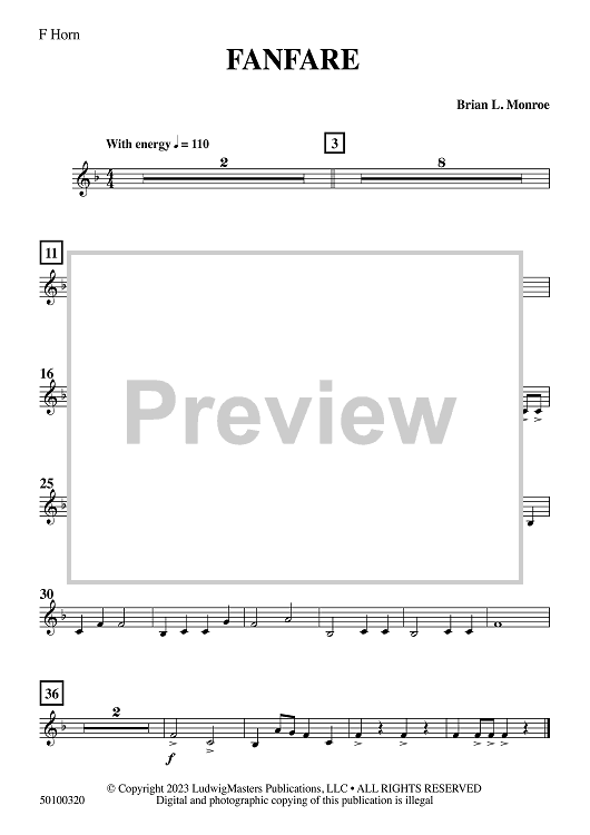 "Fanfare - F Horn" Sheet Music by Brian Monroe