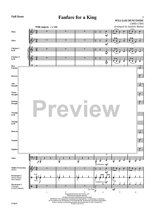 "Fanfare for a King - Score" Sheet Music by William Duncombe