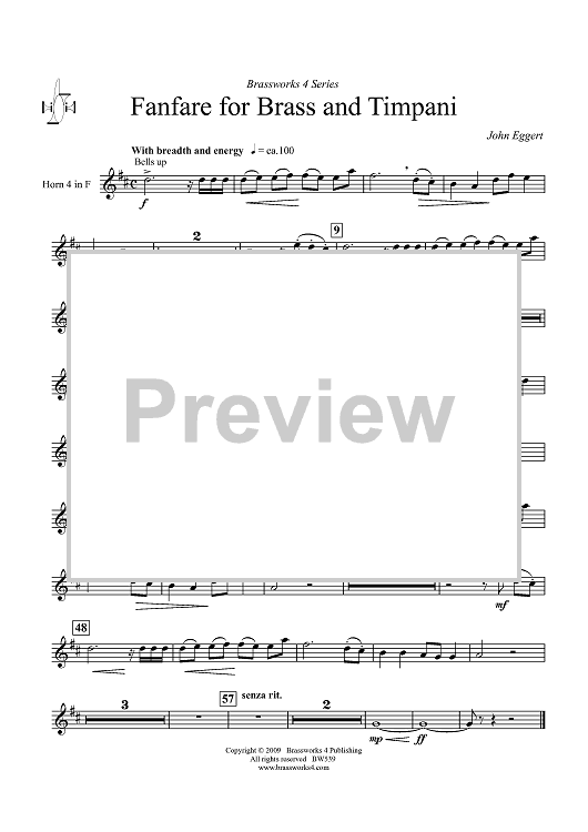 Digital Sheet Music for Fanfare for Brass and Timpani - Horn in F 4 by John Eggert scored for Brass Ensemble; id:410366