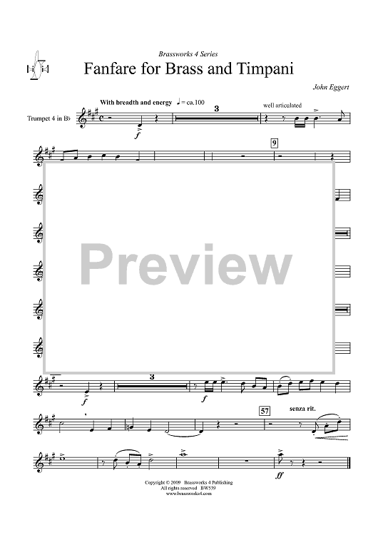 Digital Sheet Music for Fanfare for Brass and Timpani - Trumpet 4 in B-flat by John Eggert scored for Brass Ensemble; id:410360