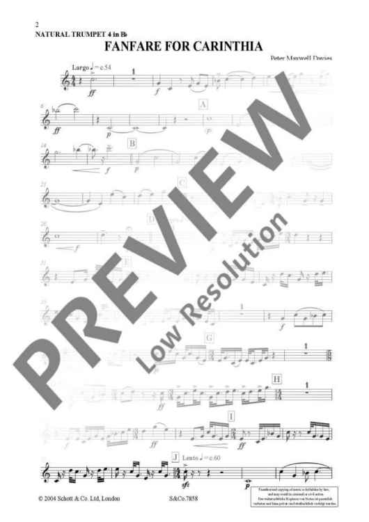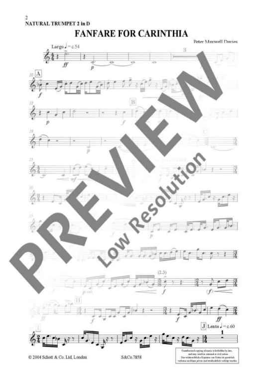 Digital Sheet Music for Fanfare for Carinthia - Score and Parts by Sir Peter Maxwell Davies scored for 4 Trumpets; id:477036