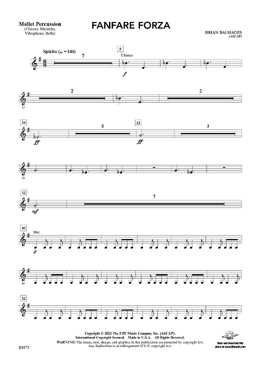 Digital Sheet Music for Fanfare Forza - Mallet Percussion by Brian Balmages scored for Concert Band; id:498755
