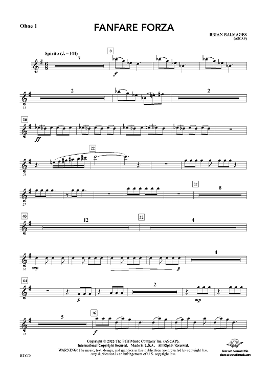 "Fanfare Forza - Oboe 1" Sheet Music by Brian Balmages