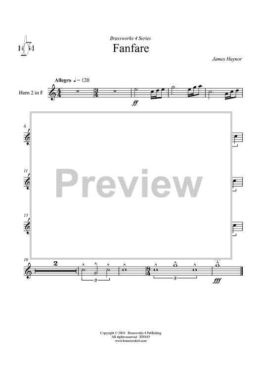 Digital Sheet Music for Fanfare - Horn 2 in F by James Haynor scored for Brass Ensemble; id:411210