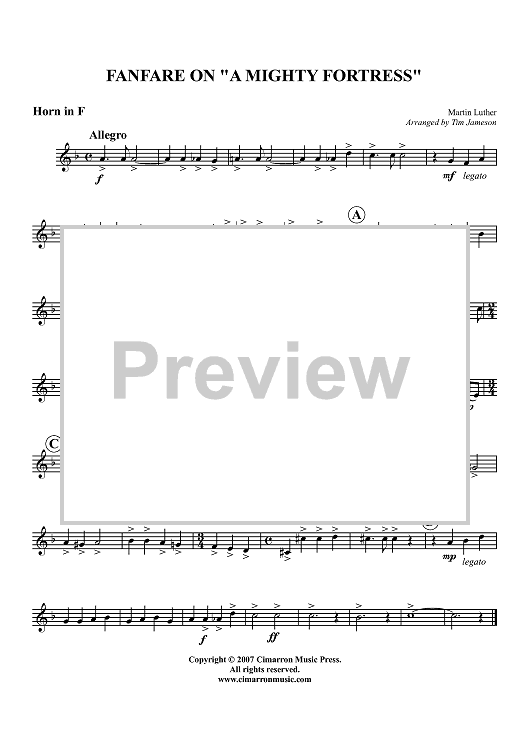 Digital Sheet Music for Fanfare on "A Mighty Fortress" - Horn in F by Martin Luther, Tim Jameson scored for Brass Quintet; id:361129