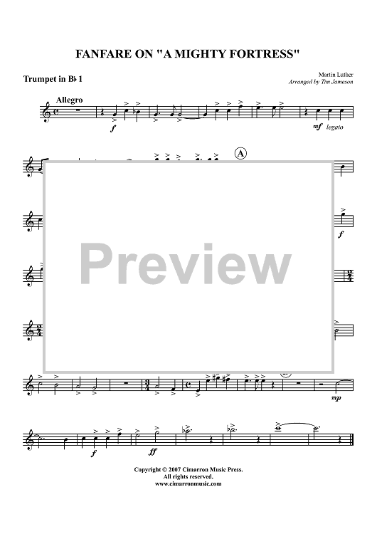 Digital Sheet Music for Fanfare on "A Mighty Fortress" - Trumpet 1 in B-flat by Martin Luther, Tim Jameson scored for Brass Quintet; id:361127