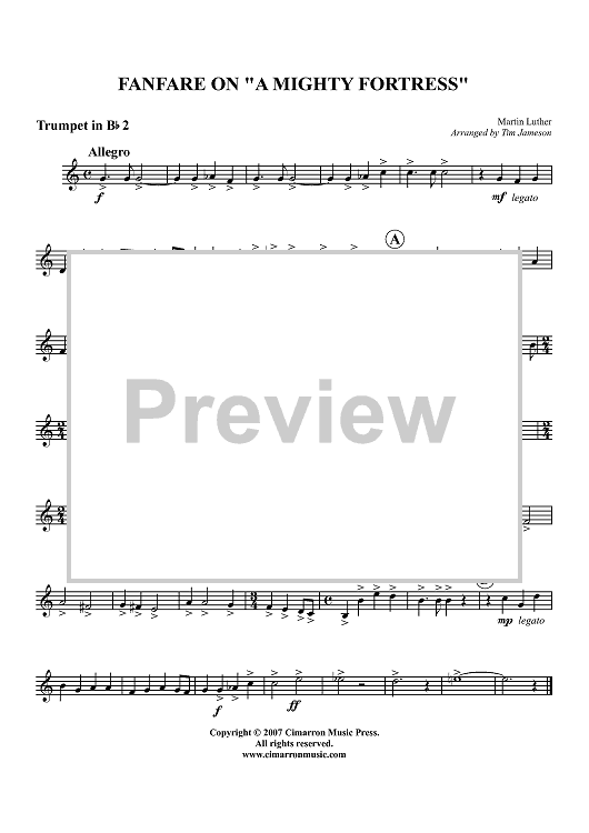 Digital Sheet Music for Fanfare on "A Mighty Fortress" - Trumpet 2 in B-flat by Martin Luther, Tim Jameson scored for Brass Quintet; id:361128