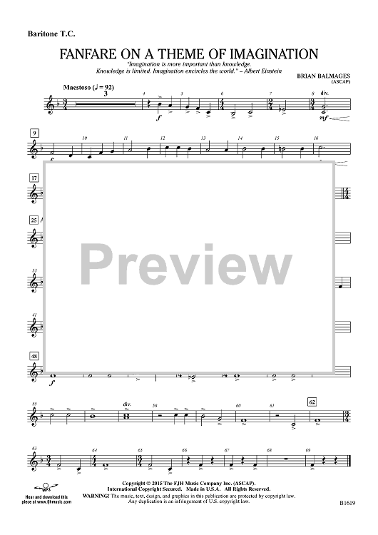 Digital Sheet Music for Fanfare on a Theme of Imagination - Baritone TC by Brian Balmages scored for Concert Band; id:454583