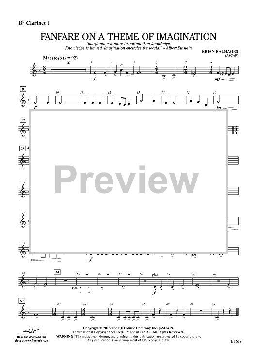"Fanfare on a Theme of Imagination - Bb Clarinet 1" Sheet Music by Brian Balmages