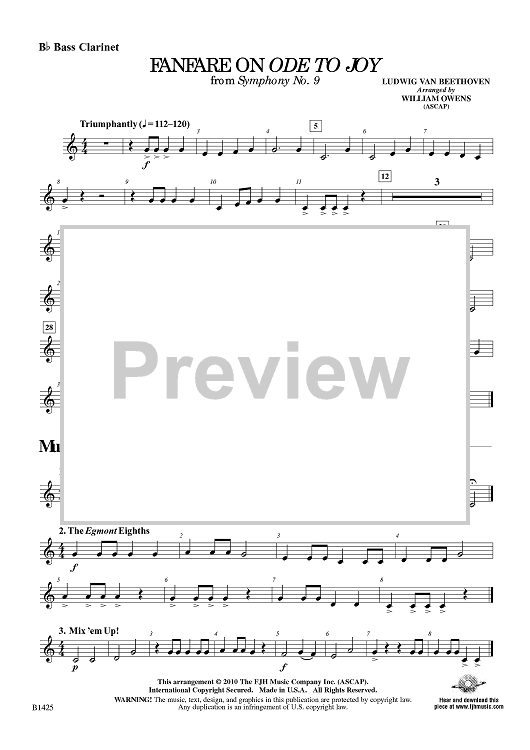 Digital Sheet Music for Fanfare On Ode to Joy - from Symphony No. 9 - Bb Bass Clarinet by Ludwig van Beethoven, William Owens scored for Beginning Band; id:415053