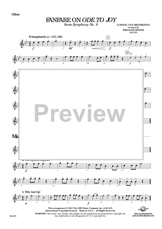 Digital Sheet Music for Fanfare On Ode to Joy - from Symphony No. 9 - Oboe by Ludwig van Beethoven, William Owens scored for Beginning Band; id:415050