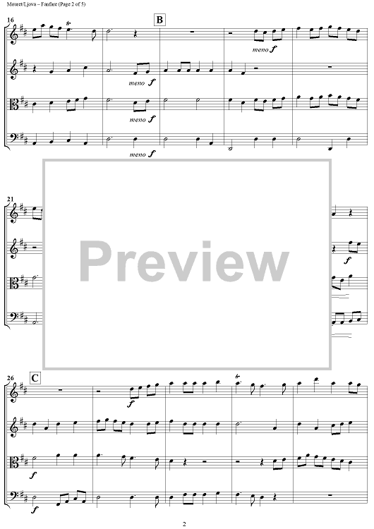 Digital Sheet Music for Fanfare - Score by Jean-Joseph Mouret, Ljova scored for String Quartet; id:320532