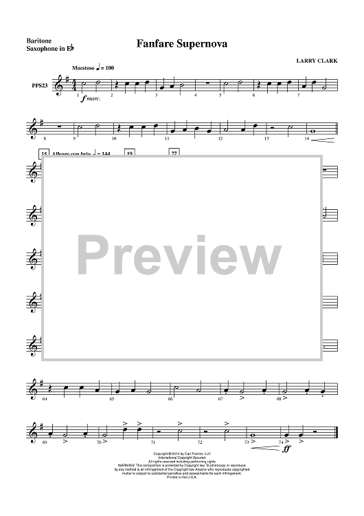 "Fanfare Supernova - Baritone Sax" Sheet Music by Larry Clark