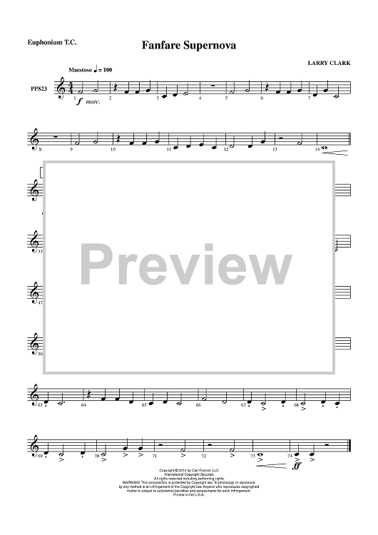 Digital Sheet Music for Fanfare Supernova - Euphonium TC in Bb by Larry Clark scored for Concert Band; id:452452