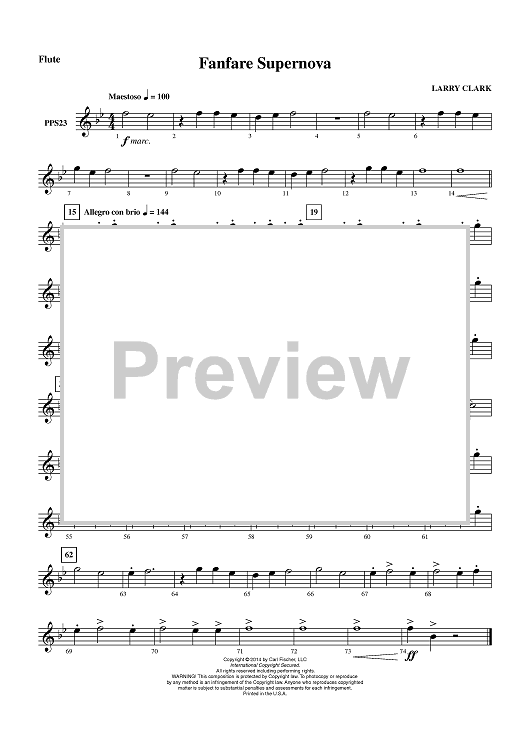 Digital Sheet Music for Fanfare Supernova - Flute by Larry Clark scored for Concert Band; id:452440