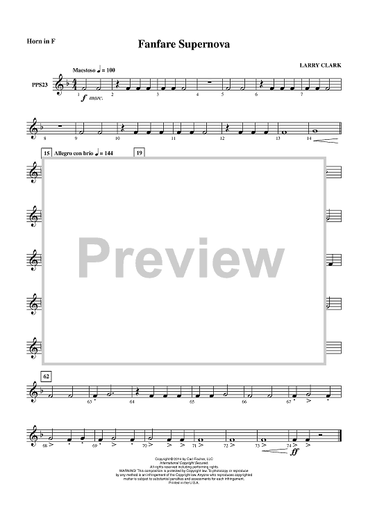 Digital Sheet Music for Fanfare Supernova - Horn in F by Larry Clark scored for Concert Band; id:452449